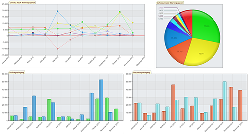 Mit dem VISIOfakt Management-Cockpit lassen sich Auswertungen schnell und einfach vom Anwender selber zusammenstellen — inklusive verschiedener grafischer Aufarbeitungen.